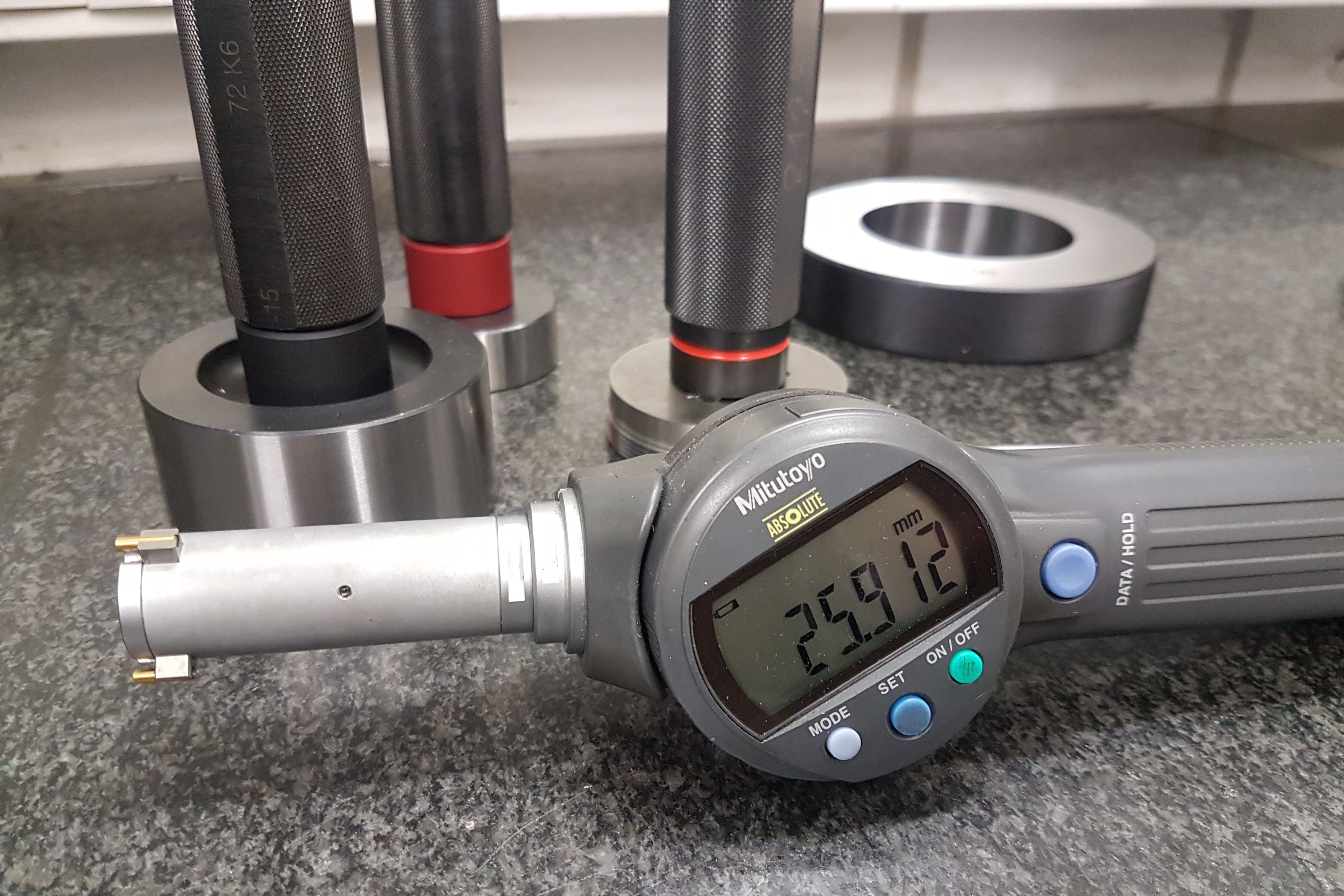 Unser Sortiment an Messgeräten beinhaltet meherere digitale 3-Punkt Innenmessgeräte. Diese arbeiten mit einem Federmechanismus und einer Genauigkeit von 0,001mm. Die titanbeschichteten Messflächen sorgen für hervorragende Haltbarkeit und Schlagfestigkeit.